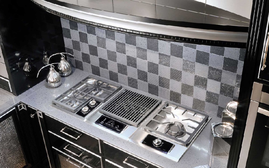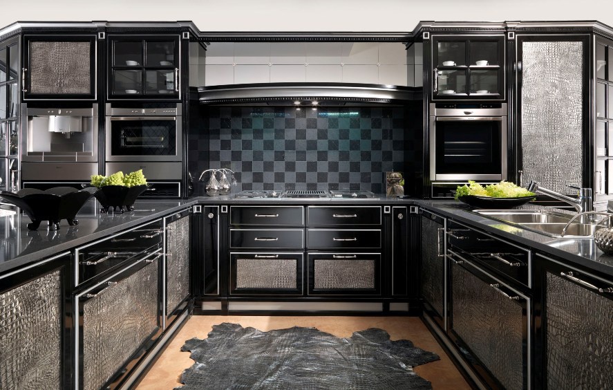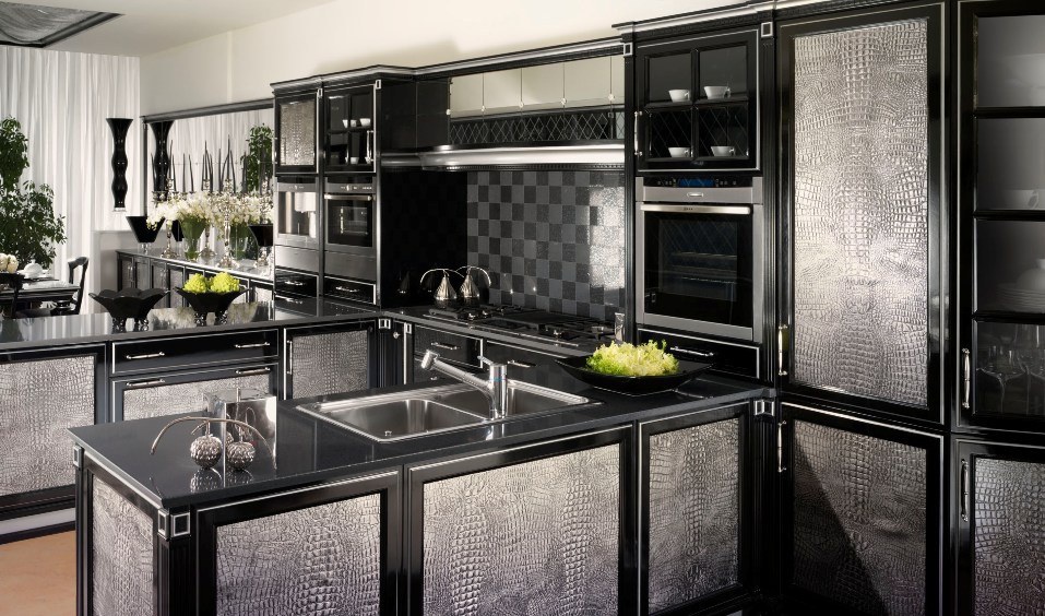 Kitchen (kitchen set) in leather and black lacquer Grand Gourmet Brummel