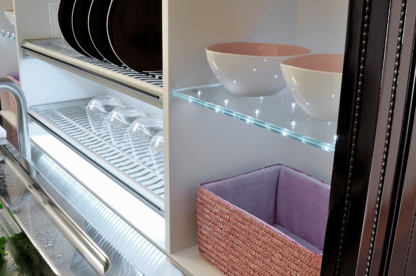 frame: solid wood the facade: glass working area: stainless steel the facade: lacquered |