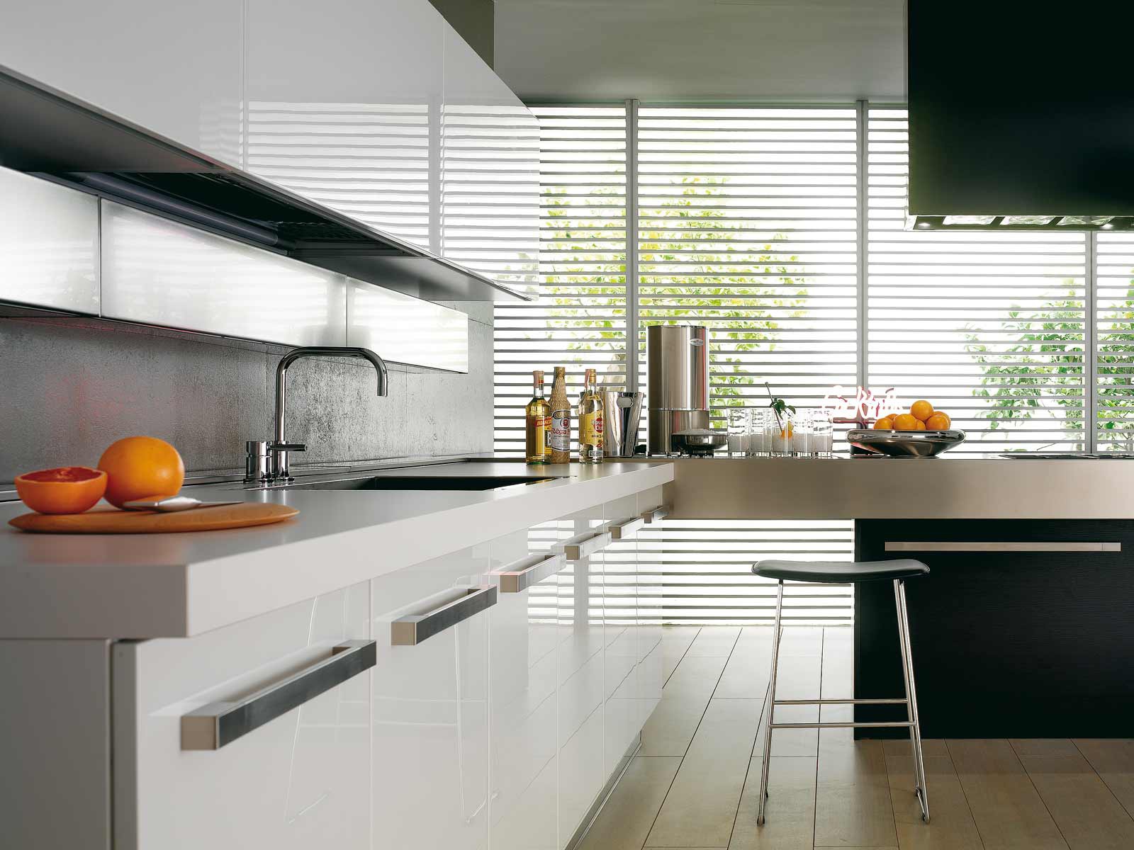 Basic kitchen set from the Italian manufacturer Rossana, kitchen collections Basic. The kitchen is designed in harmony with modern, dynamic lifestyles. The frame is made from solid wood in the finishes Matt or glossy lacquer, black or white. The working area is stainless steel. Many customization options allows different ways to interpret the kitchen space, creating a bright individual solutions.