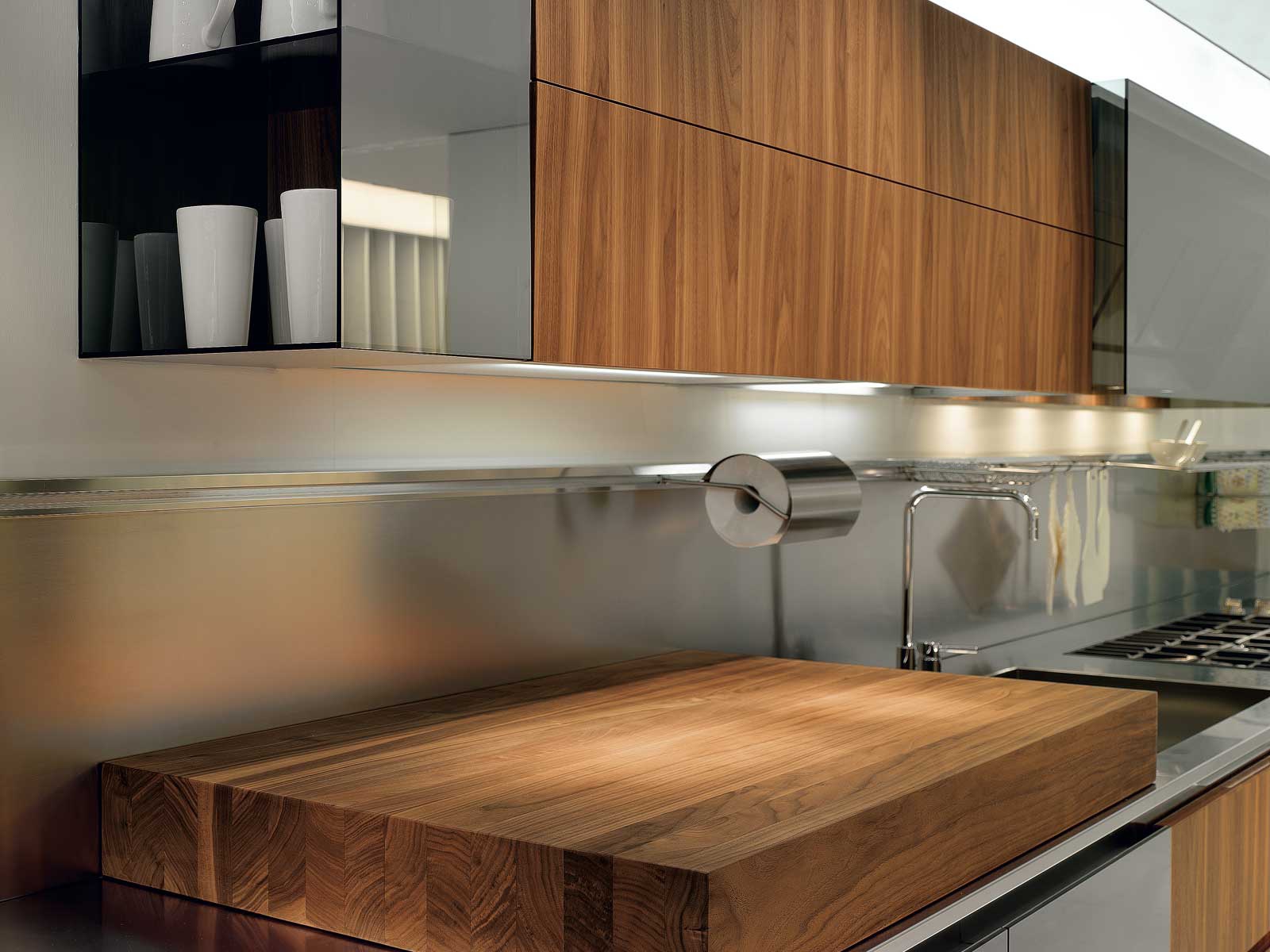 frame: walnut tree the facade: glass working area : stainless steel the facade: lacquered |
