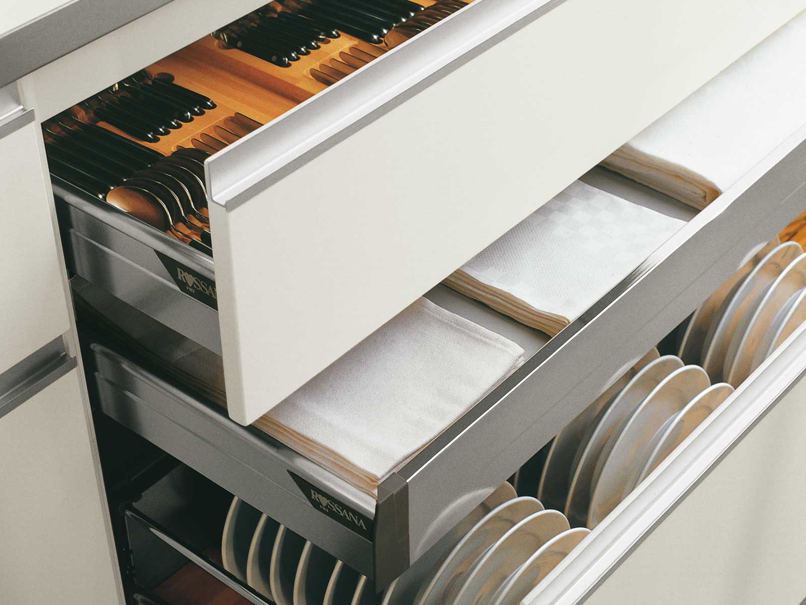 Oslo kitchen set from the Italian manufacturer Rossana, kitchen collections Oslo. Kitchen in a modern style. Made of ebony wood with a surface treated high gloss lacquered white or black. Design compliment the stainless steel. Kitchen Oslo reflects the most current understanding of modern luxury that symbolizes value and wealth.