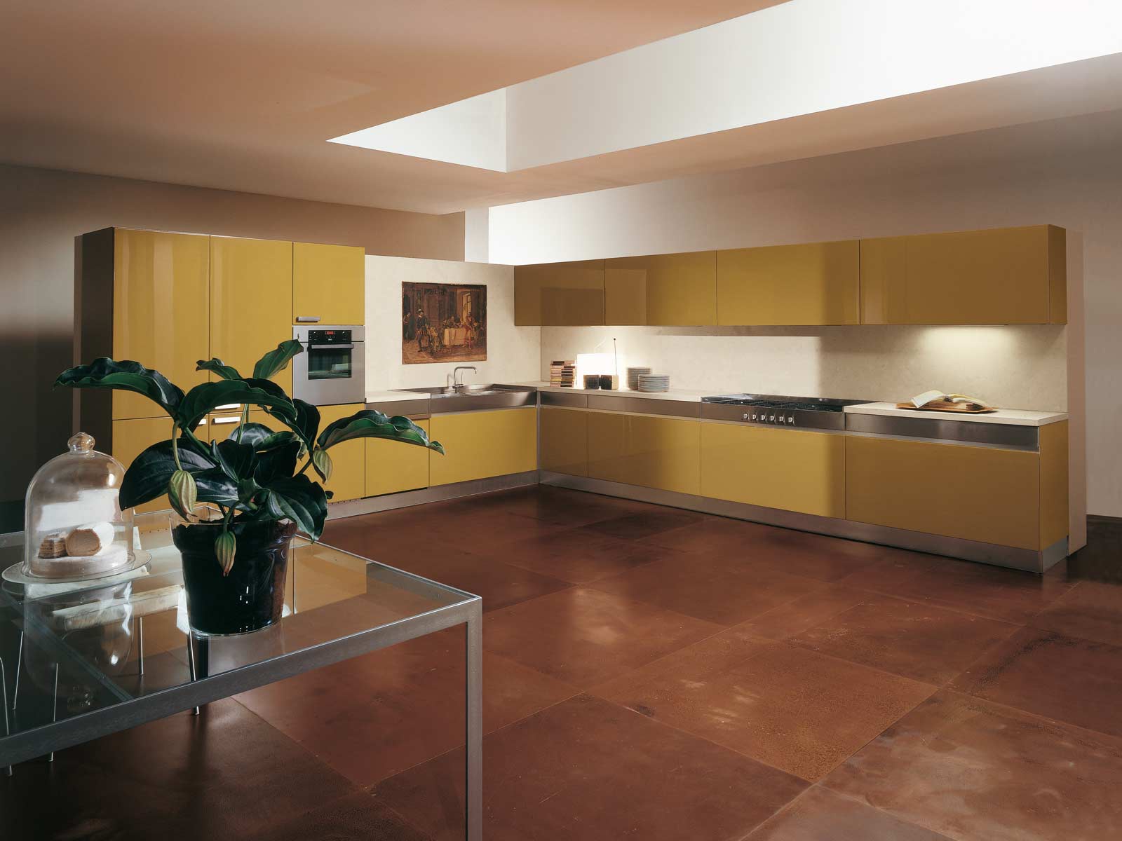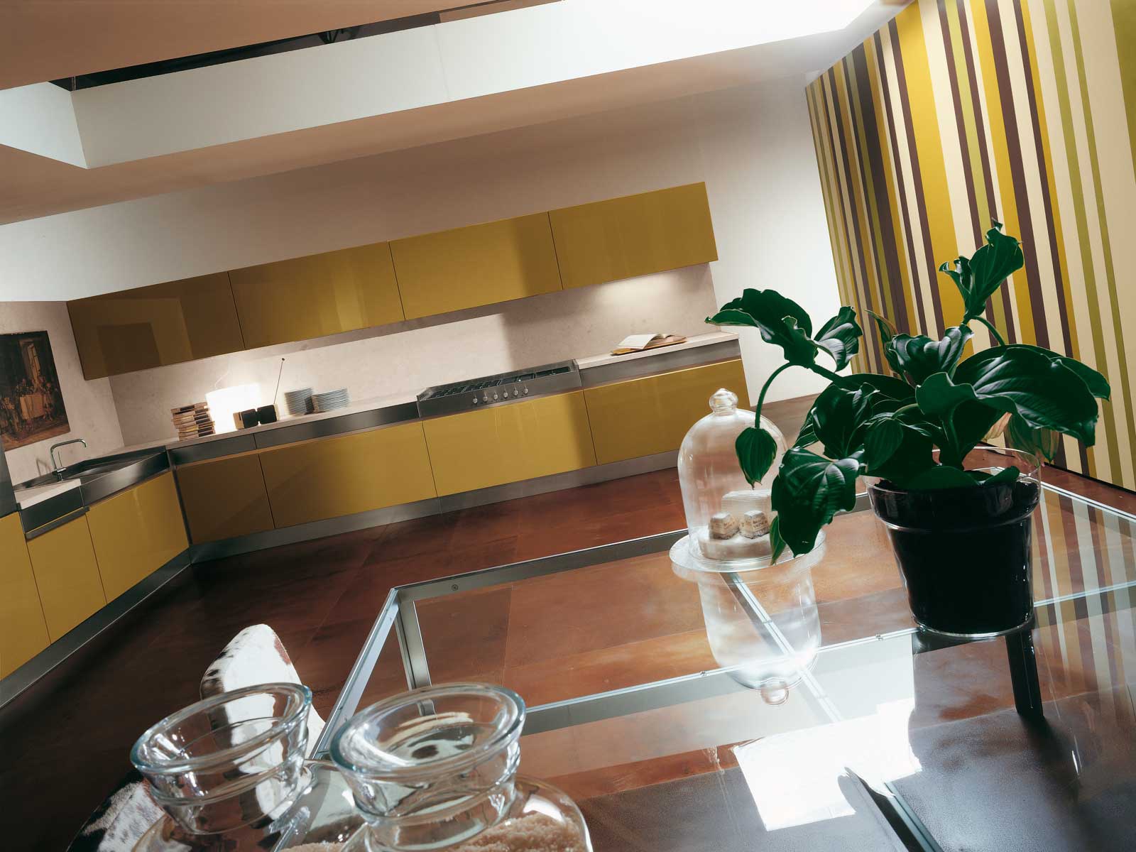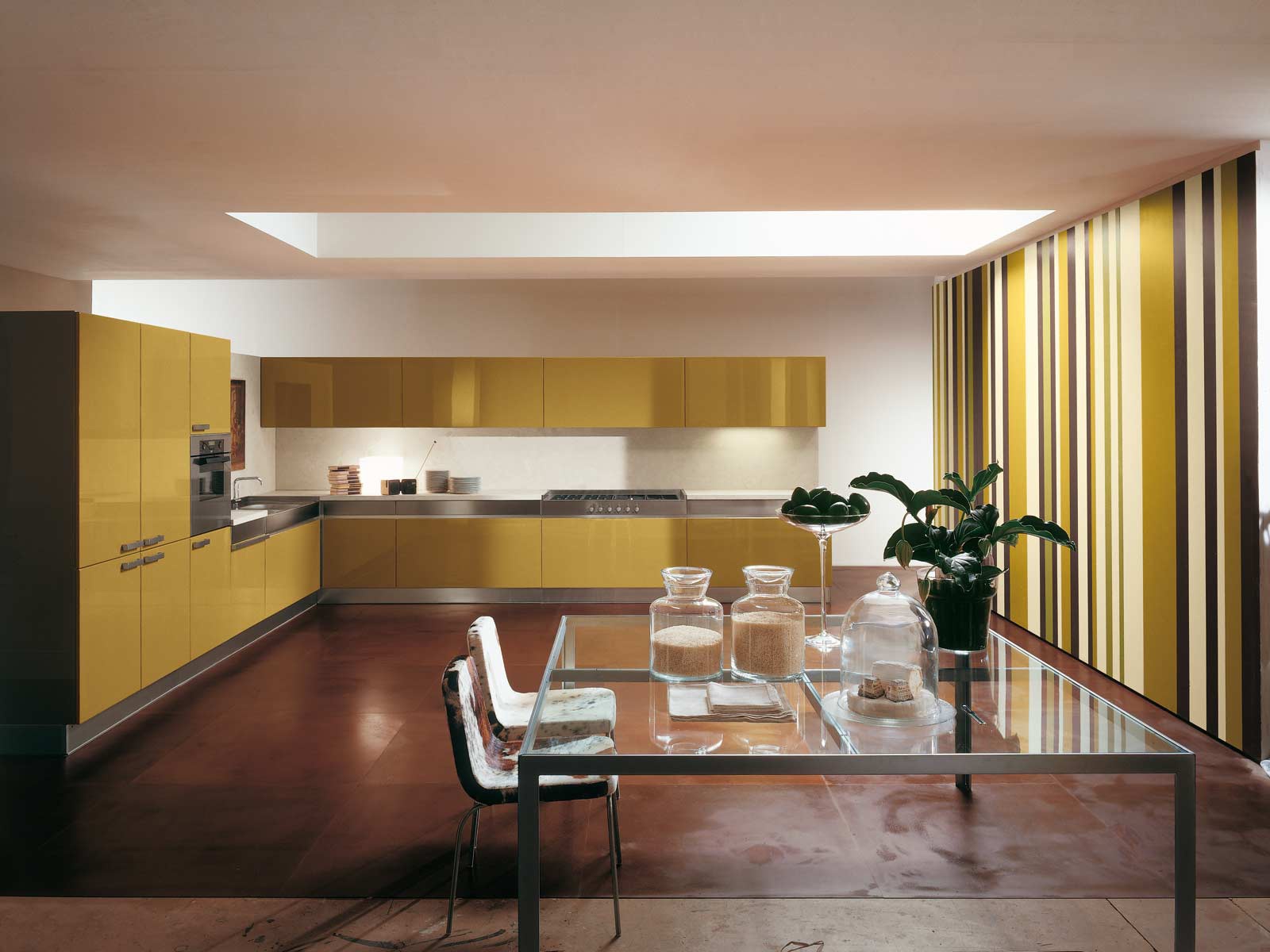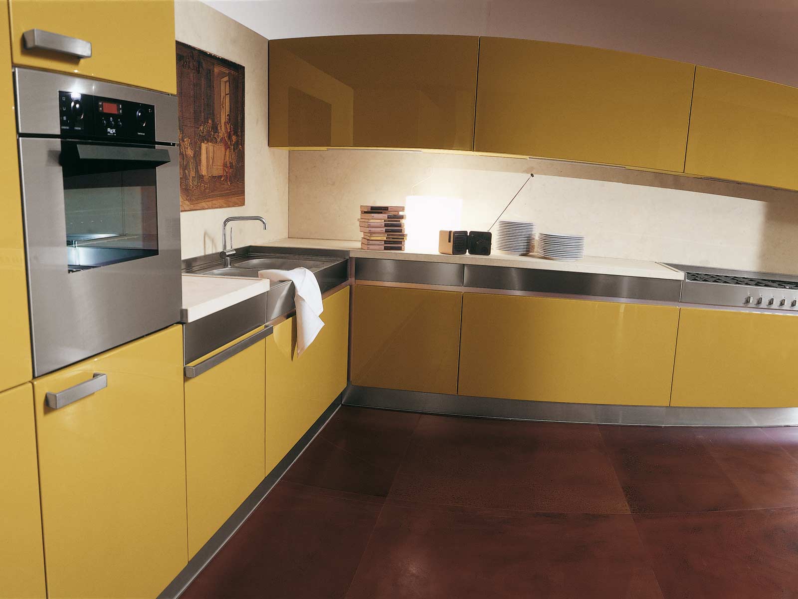 Kitchen Verona from the Italian manufacturer Rossana, kitchen collections Verona. The kitchen is in contemporary design, aesthetic lines and innovative technical equipment. Made of stainless steel and MDF surface that is treated with glossy varnish. Sophistication and understated aesthetics have to comfort.