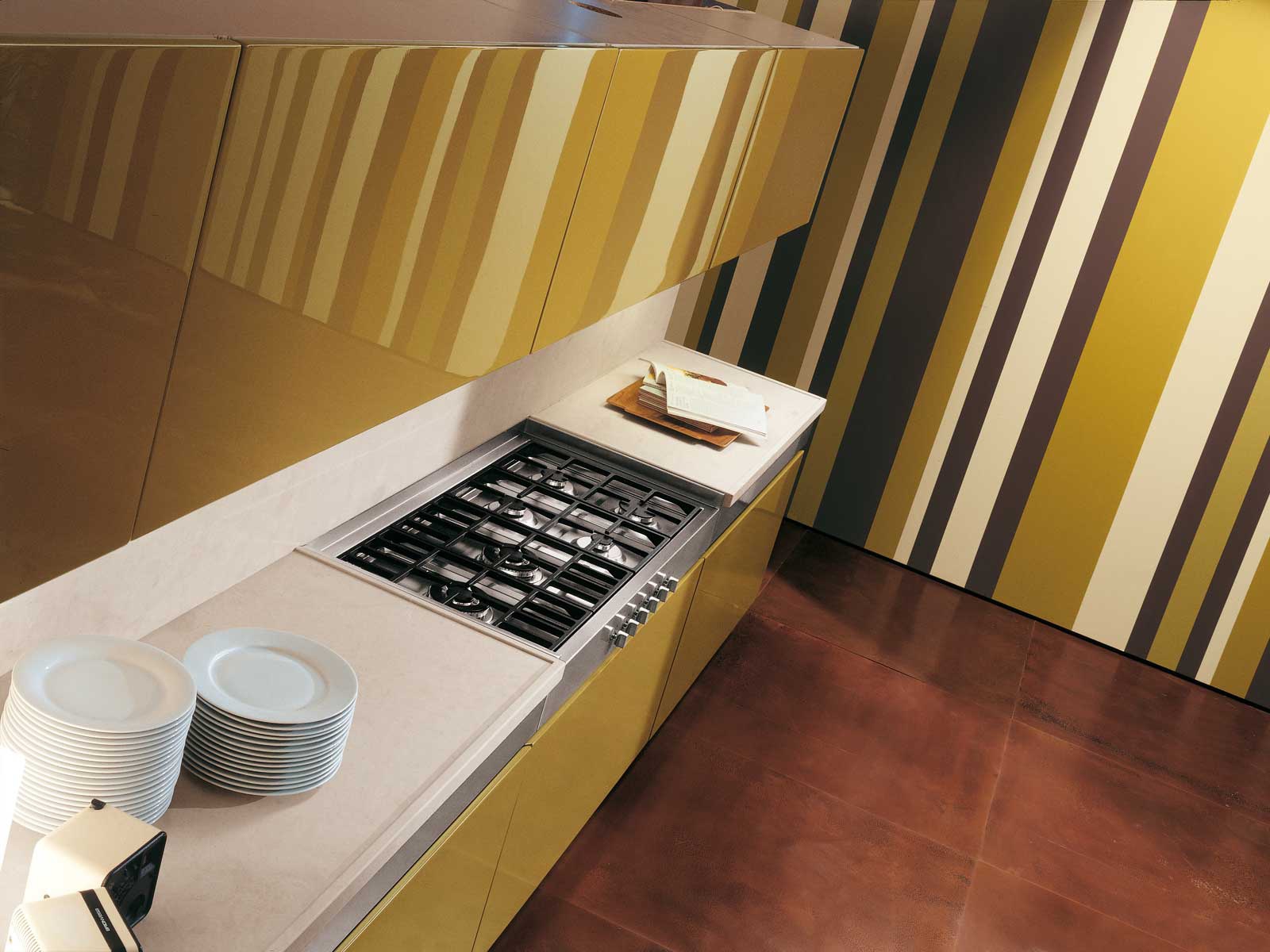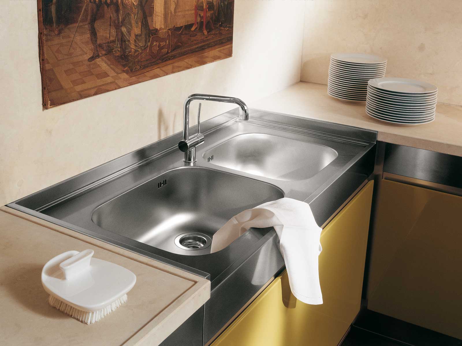frame, facades: MDF the facades: stainless steel countertop: stone the facade: lacquered |