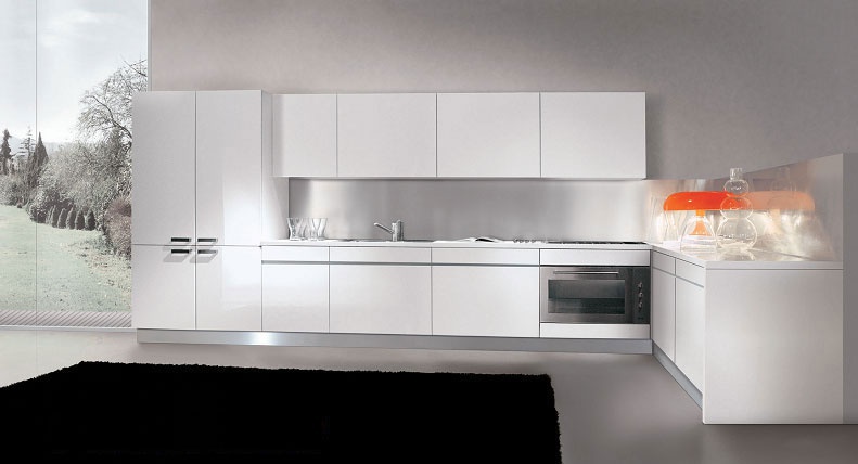Kitchen Verona from the Italian manufacturer Rossana, kitchen collections Verona. The kitchen is in contemporary design, aesthetic lines and innovative technical equipment. Made of MDF with a surface treated with glossy varnish of white color. Working area - natural stone. Sophistication and understated aesthetics, come to comfort and communication.