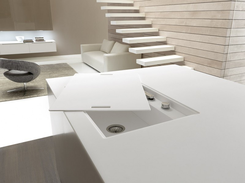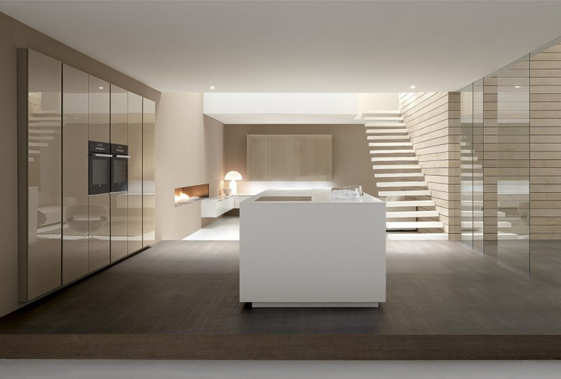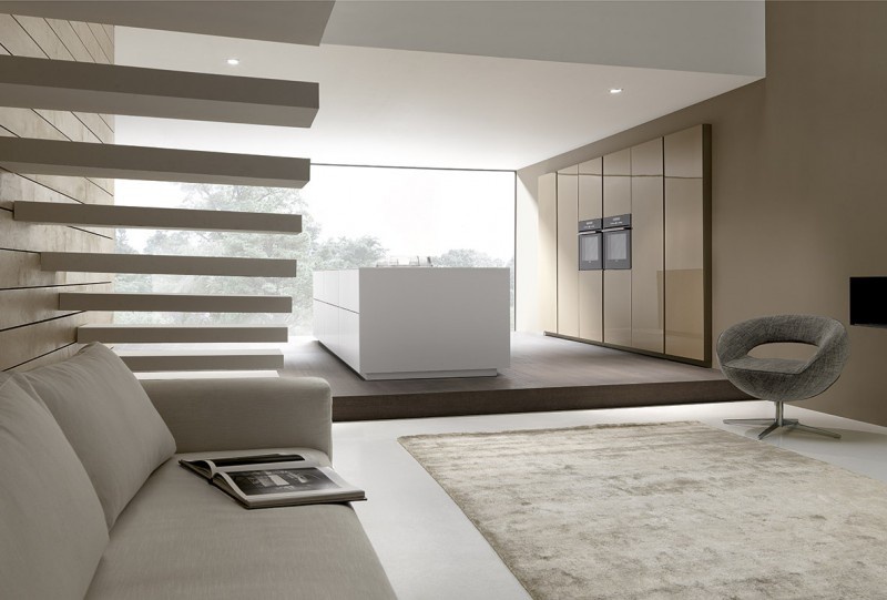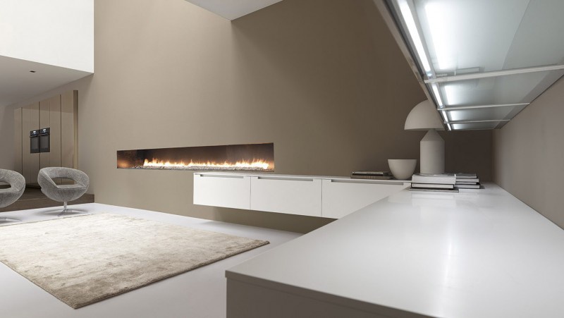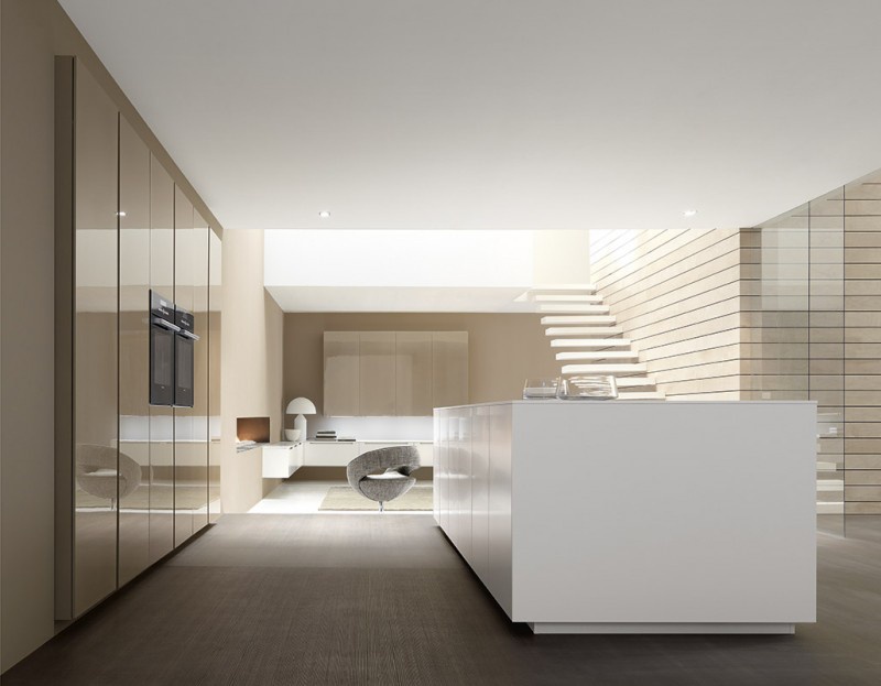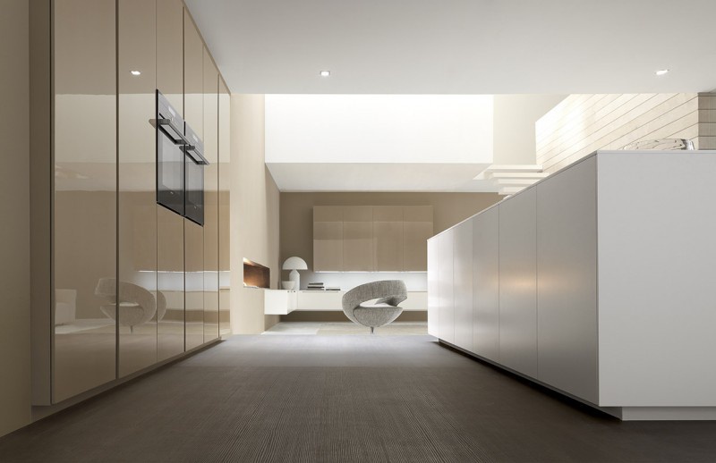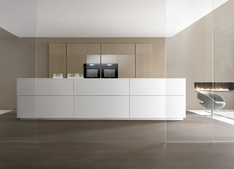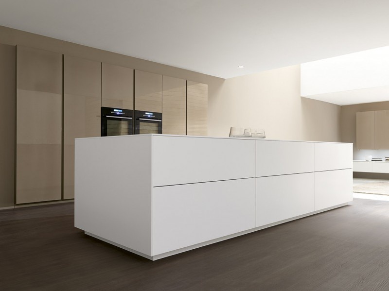 Kitchen Linea from Italian manufacturer Comprex, the collection of Linea. The kitchen is an expression of simplicity and minimalist style combines functionality and elegance. The collection is intended for customers who are looking for subtle emotions and prefer a modern lifestyle. The frame is made from solid wood, finish options: glossy varnish from the company portfolio. Drawers and swing doors without handles. Hinged modules with internal lighting. Colours in stock.