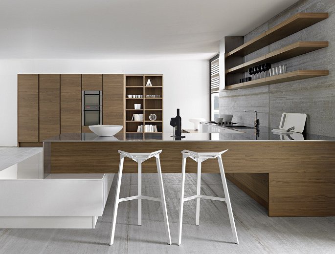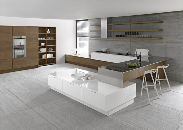 Segno kitchen from Italian manufacturer Comprex, Segno collection. The kitchen is an expression of minimalist style combining functionality and sophistication, elegance and glamour. Drawers and swing doors without handles. The frame is made of stainless steel and solid wood, finish options: glossy varnish. Colours in stock. Collection is designed for customers who prefer modern lifestyle.