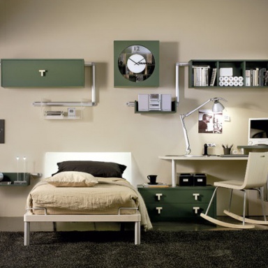 Italian furniture for children's room or teen room from the manufacturer Tumidei Tiramolla collection. As any Italian or Italian baby furniture for a teenager, in the manufacture of elements of the composition No. 10 from the collection Tiramolla uses only harmless dyes and coatings. Set includes a twin bed on a metal frame, a nightstand with drawers. Provided in the composition and working place consisting of a table and chair is made in the form of rocking.Set complements the wall open and closed shelves.Tumidei offers 33 color decisions of furniture for children's room, also 8 colors for metal surfaces. Italian baby Tiramolla collection will give joy to your children and create for them the world they will remember with special warmth.