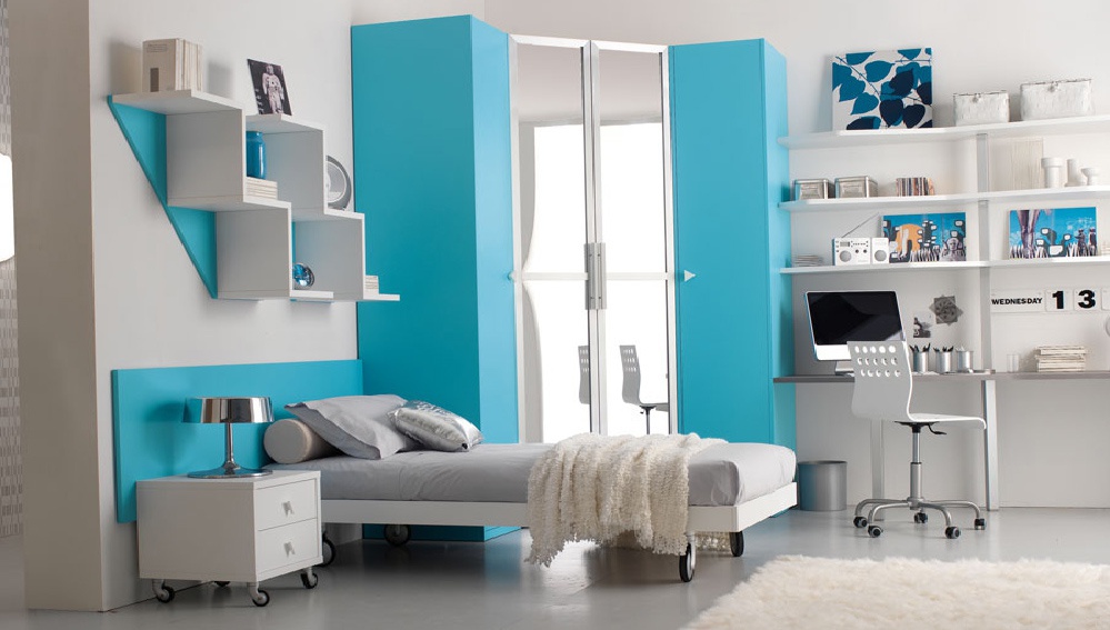 Italian furniture for children's room or teen room from the manufacturer Tumidei Tiramolla collection. As any Italian or Italian baby furniture for a teenager, in the manufacture of elements of the composition No. 12 of Tiramolla collection uses only harmless dyes and coatings. Set consists of a single bed, wardrobe, bedside tables and shelving systems. There is also a workplace consisting of a Desk and chair. Bed, chair and bedside table complemented with wheels, which makes them easy to move. For the manufacture of items used were wood and metal. Tumidei offers 33 color decisions of furniture for children's room, also 8 colors for metal surfaces. Italian baby Tiramolla collection will give joy to your children and create for them the world they will remember with special warmth.