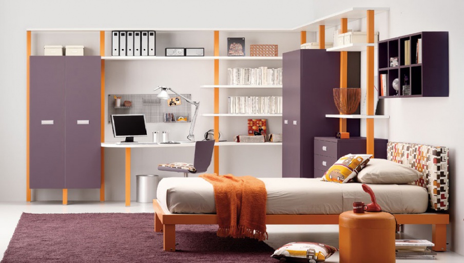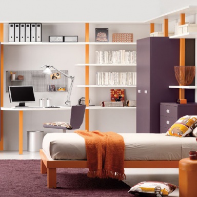Italian furniture for children's room or teen room from the manufacturer Tumidei Tiramolla collection. As any Italian or Italian baby furniture for a teenager, in the manufacture of elements of the composition No. 13 from the Tiramolla collection uses only harmless dyes and coatings. The composition includes a single bed in fabric, a modular storage system composed of shelves and wardrobes. The composition also includes a chair and a Desk. The model is made in an interesting design. Tumidei offers 33 color decisions of furniture for children's room, also 8 colors for metal surfaces. Italian baby Tiramolla collection will give joy to your children and create for them the world they will remember with special warmth.