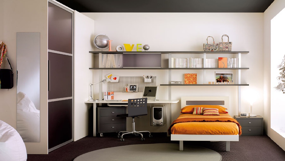 Italian furniture for children's room or teen room from the manufacturer Tumidei Tiramolla collection. As any Italian or Italian baby furniture for a teenager, in the production of elements of composition No. 16 from the Tiramolla collection uses only harmless dyes and coatings.The composition consists of wardrobe, single bed, several shelves, bedside tables. The manufacturer has provided a workplace consisting of a computer table, bedside tables with multiple drawers, and a chair on wheels. Wardrobe supplemented by a mirror. Tumidei offers 33 color decisions of furniture for children's room, also 8 colors for metal surfaces. Italian baby Tiramolla collection will give joy to your children and create for them the world they will remember with special warmth.