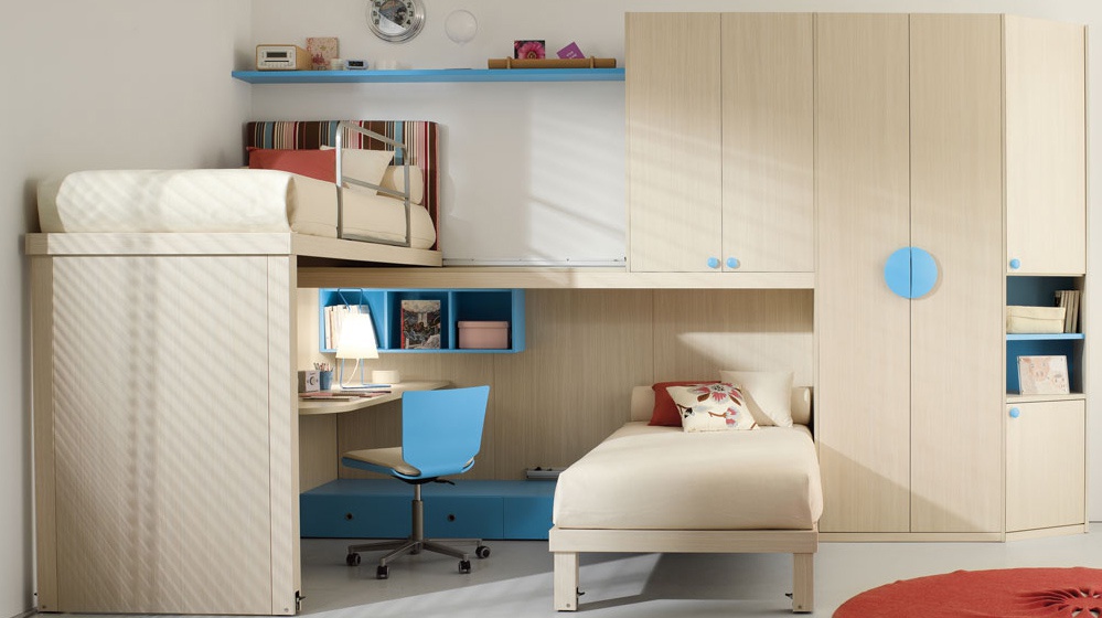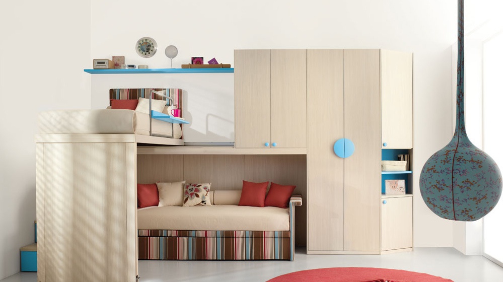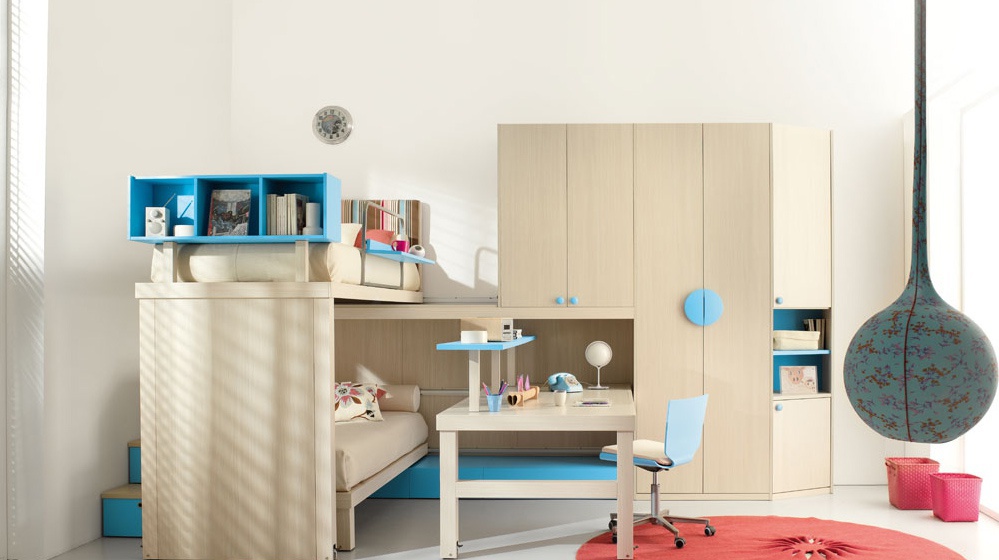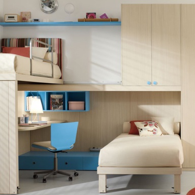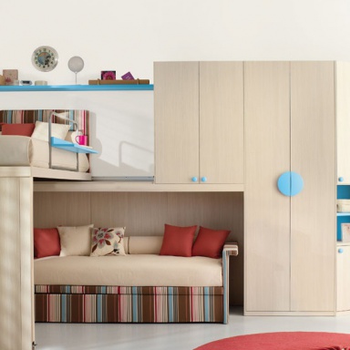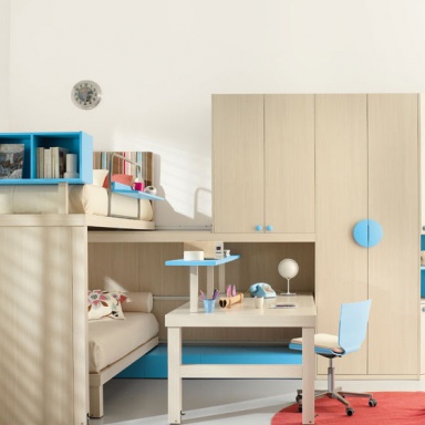 Italian furniture for children's room or teen room from the manufacturer Tumidei Tiramolla collection. As any Italian or Italian baby furniture for a teenager, in the manufacture of elements of the composition No. 19 Tiramolla collection uses only harmless dyes and coatings. The composition consists of bunk beds, wardrobe. Provided and a workplace consisting of a Desk and chair on wheels. Modules can be positioned in different ways . Also one beds may be replaced by a sofa. Objects made of wood and metal. Tumidei offers 33 color decisions of furniture for children's room, also 8 colors for metal surfaces. Italian baby Tiramolla collection will give joy to your children and create for them the world they will remember with special warmth.