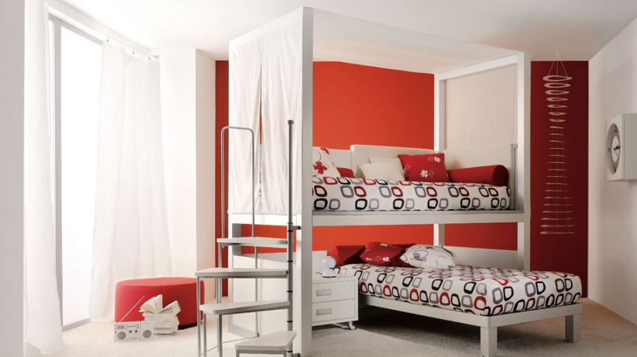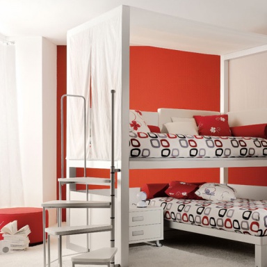 Italian furniture for children's room or teen room from the manufacturer Tumidei Tiramolla collection. As any Italian or Italian baby furniture for a teenager, in the production of elements of composition No. 21из Tiramolla collection uses only harmless dyes and coatings. Set consists of bunk beds and bedside tables. Bed custom frame metal and wood,the upper bed is supplemented by a canopy bed. Provided twisted ladder. Bedside table consists of several drawers is made of wood.. Tumidei offers 33 color decisions of furniture for children's room, also 8 colors for metal surfaces. Italian baby Tiramolla collection will give joy to your children and create for them the world they will remember with special warmth.