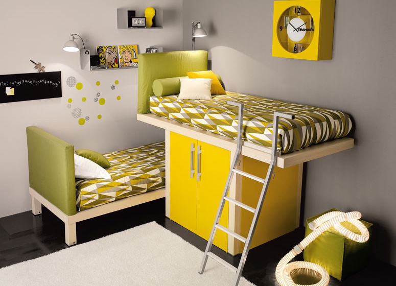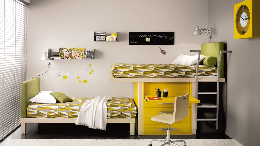 Italian furniture for children's room or teen room from the manufacturer Tumidei Tiramolla collection. As any Italian or Italian baby furniture for a teenager, in the manufacture of elements of the composition No. 23 from the Tiramolla collection uses only harmless dyes and coatings. Set consists of twin beds with metal ladder, drawers, Desk, chair and pouf. A single bed can be replaced with a bunk. The subjects of this composition is made of wood and metal. Tumidei offers 33 color decisions of furniture for children's room, also 8 colors for metal surfaces. Italian baby Tiramolla collection will give joy to your children and create for them the world they will remember with special warmth.