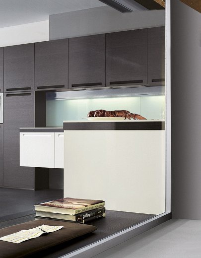 Kitchen set from Essenza Italian manufacturer Comprex from the collection Essenza. The frame is made of MDF, finishing of facades - matte or gloss lacquer, the wood veneer. Colours in stock. Drawers and swing doors without handles. The kitchen combines functionality and elegance.