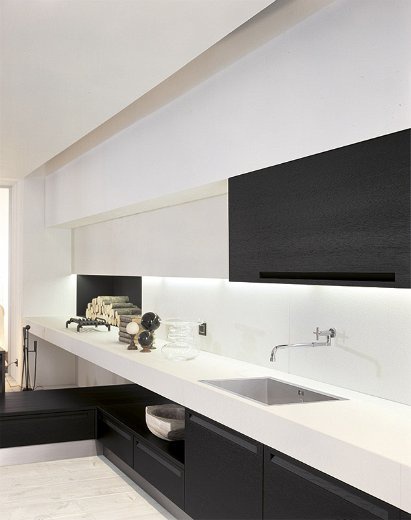 Kitchen set from Essenza Italian manufacturer Comprex from the collection Essenza. Frame and fronts are made of MDF in veneer finish or varnish from the company portfolio. Colours in stock. The kitchen combines functionality and elegance. Collection is designed for Customers who prefer modern lifestyle.