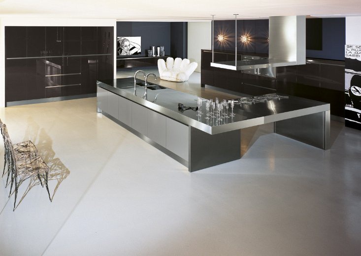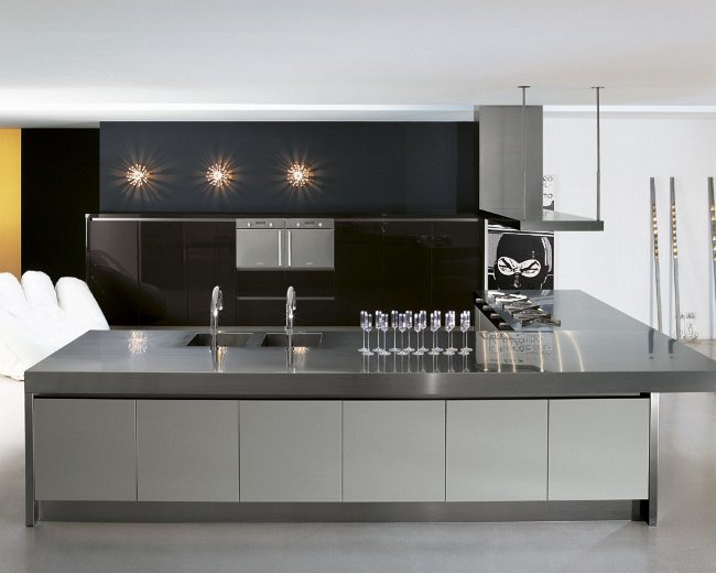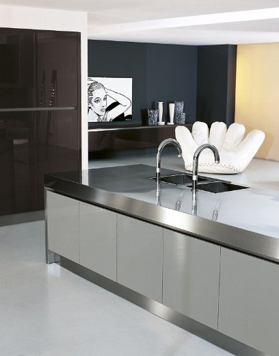 People kitchen cabinets from Italian manufacturer Comprex from the collection People. Collection is designed for customers who prefer modern lifestyle. The frame is made of stainless steel and particleboard class E1 finish options: Matt or gloss lacquer, the wood veneer. Pen recess painted in the same color as the door. The working area is stainless steel. Colours in stock. The kitchen combines functionality and elegance.