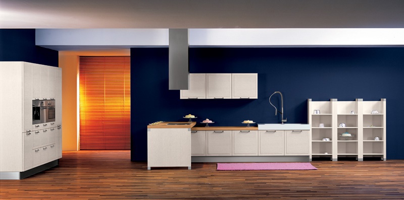 Kitchen set Santa Fe from Italian manufacturer Comprex from the collection of the Santa Fe. The kitchen combines functionality and naturalness, tranquility and harmony. The frame is made from solid oak and chipboard class E1 with a water repellent finish. Finish options: Matt or gloss lacquer, the wood veneer (nine shades). Handles - stainless steel. Set complements bookcase with open shelves.