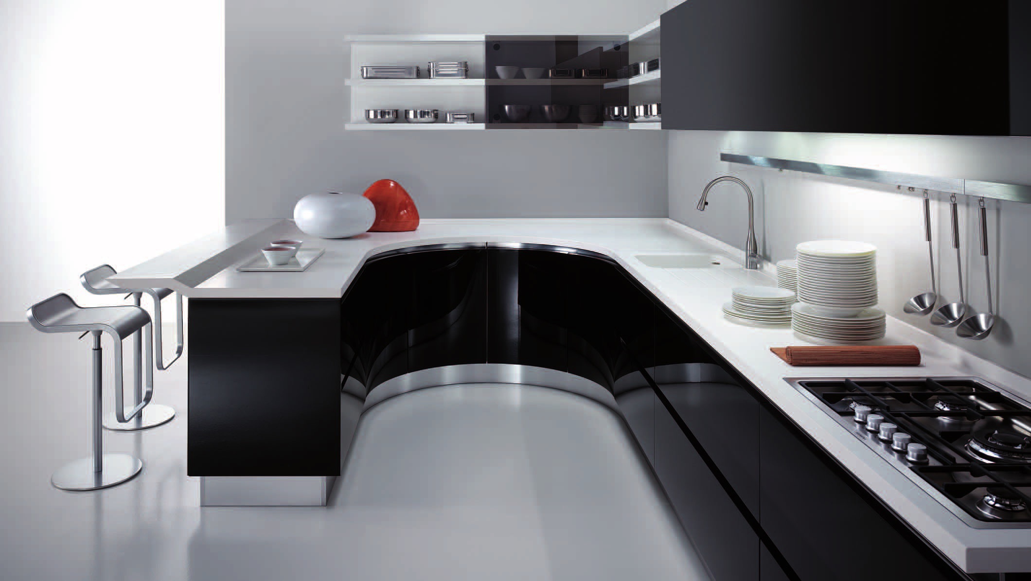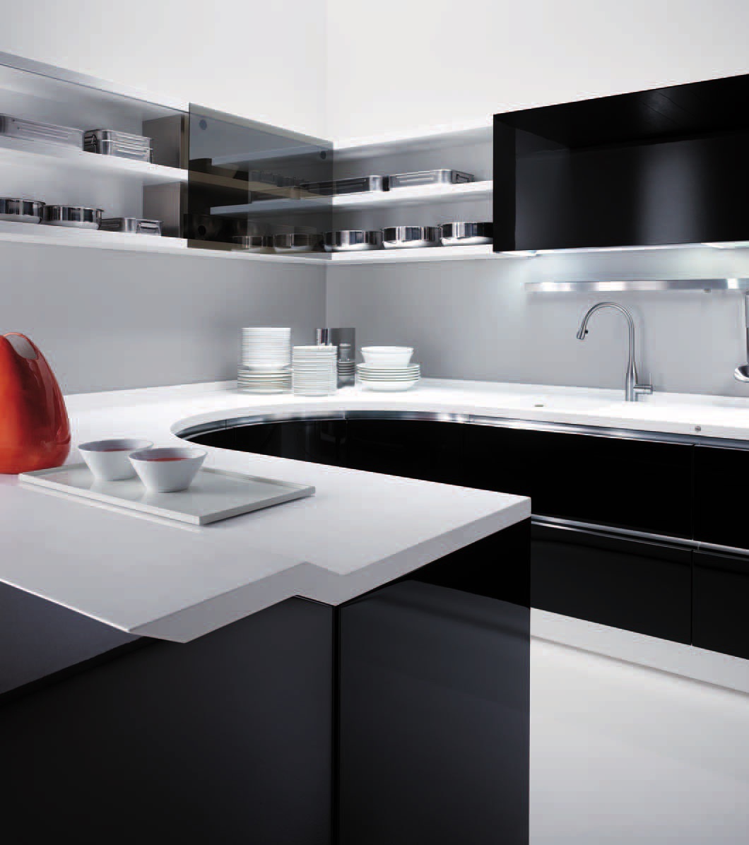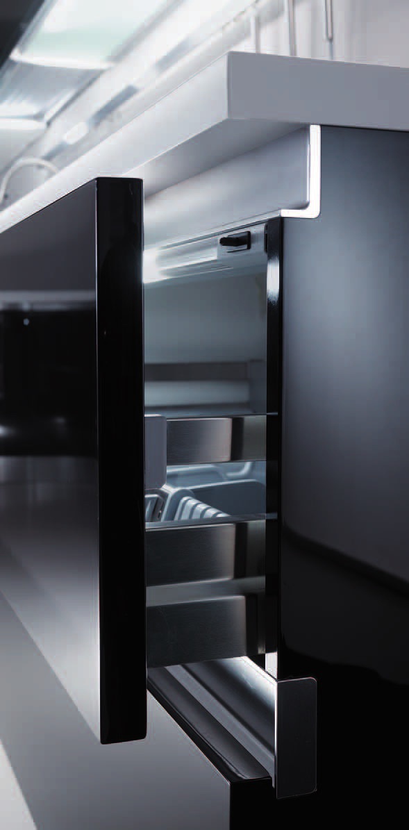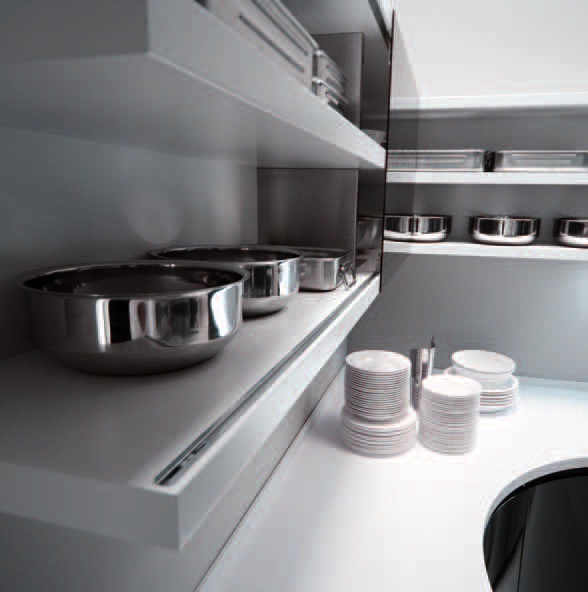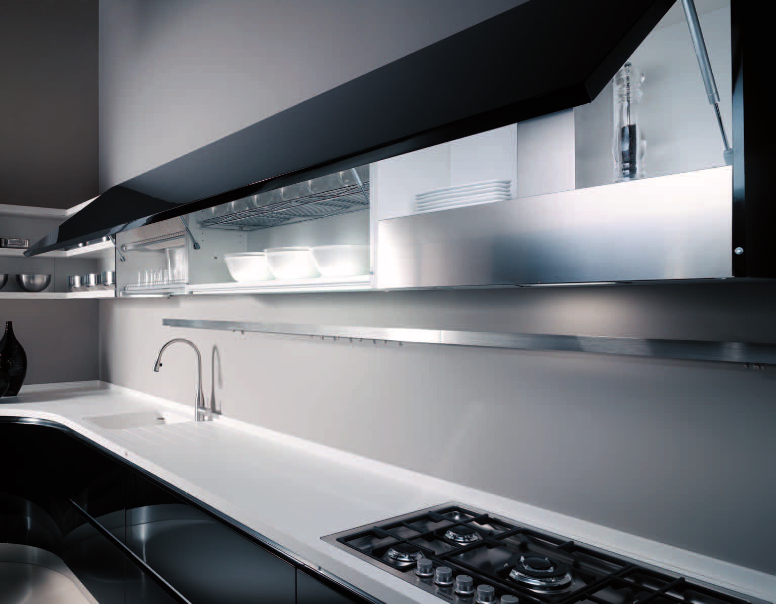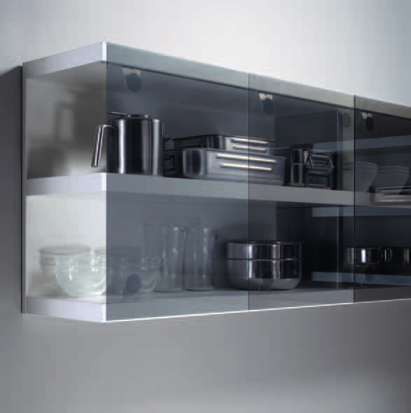 facades: glass accessories: stainless steel frame: MDF countertop: stone frame, facades: lacquered |