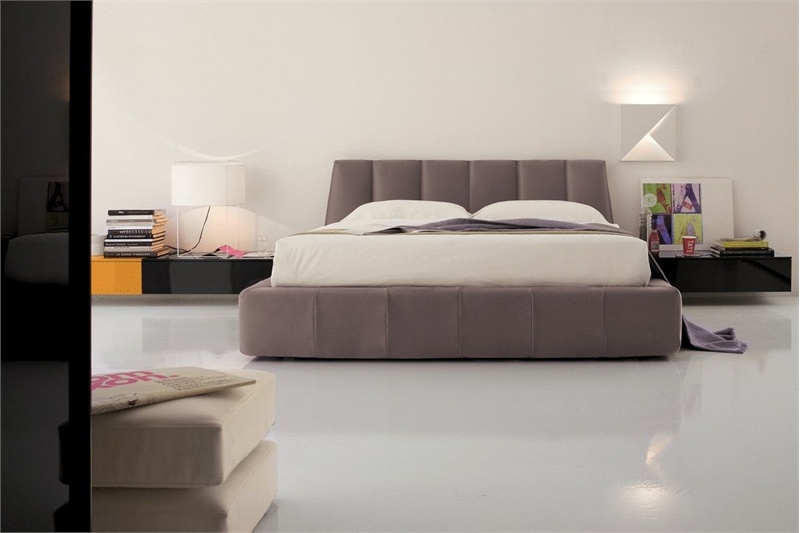 Orlando double bed from Italian manufacturer Bimax. The model is made on a frame of wood. Upholstery textile is proposed. The case is removable. The model can be supplemented with lacquered hanging shelves. The bed is designed in modern style.