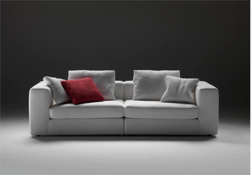 The More Ice sofa from Italian manufacturer Meritalia. Modular sofa. This model has decorative pillows. Available model various depths. Presentation of modules of different widths. The sofa is designed in modern style.