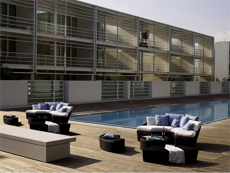 Arena modular sofa from Italian manufacturer Varaschin. Roof-the hood folds up and is easily removed. For round version - decorative pillows of different shapes and sizes. The model is made in modern style.