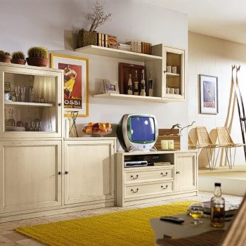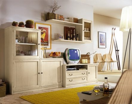 The modular system includes cabinets, cabinets with drawers, open and closed sections, wall cabinets, shelves. Decoration of facades is a manual polishing and fittings of metal module.