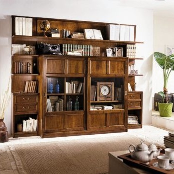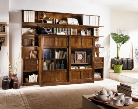 The Domino wall from the Italian manufacturer Moletta Mobili made in the classic style from solid walnut and cherry. Has exquisite finishes and extensive structural and functional solutions, ideal for the living room, library and office.