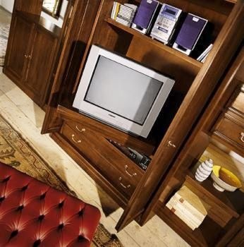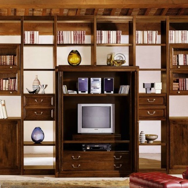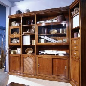 Wall Domus from the Italian manufacturer Moletta Mobili made from solid walnut or cherry, and the countertops facade and there is a veneer finish of Italian walnut or cherry. Wall Domus is executed in classical style, but at the same time combines tradition and innovation. This wall is ideal for the living room, library and office. Due to the fact that it comes in modules with three different widths and depths,and are equipped with relevant accessories, it satisfies every need.