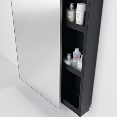 Narrow wall Cabinet ( Horm). The model assumes storage of shoes or cosmetics in the bathroom. Wardrobe with mirrored sliding doors, which allows not to use additional mirror in the room.