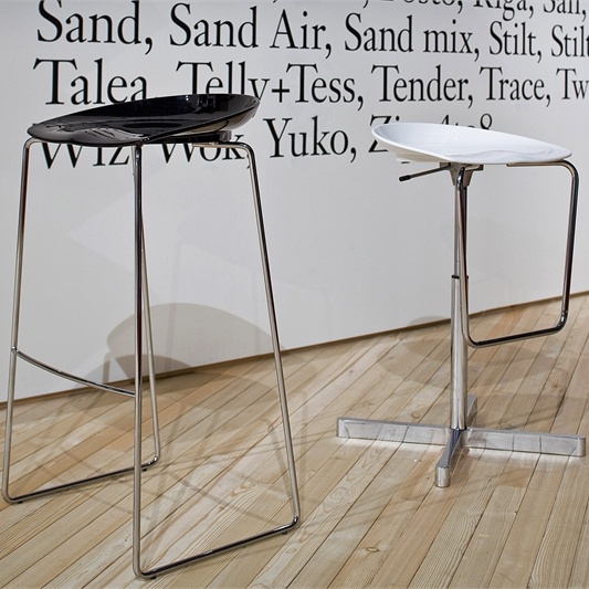 Flan bar stool from the Italian manufacturer Desalto. The model is made on a frame of aluminum. The seat is made of plastic. The finish offers light and dark versions. The model is equipped with a footrest. Made in a modern style.