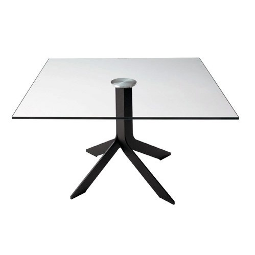 Iblea dining table from Italian manufacturer Desalto. The frame is made of metal. Options table top: transparent glass or MDF white or black. The table can be round, oval or rectangular shape according to the customer. The model is made in modern style.