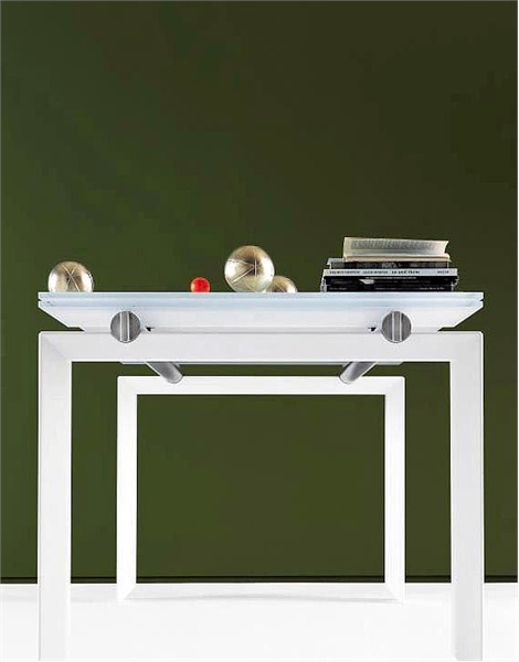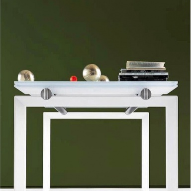 Stilt dining table from Italian manufacturer Desalto. The frame is made of steel. The legs are made of wood. The table top is made of transparent or matte glass. The model is made in modern style. Decorate the interior of your home.