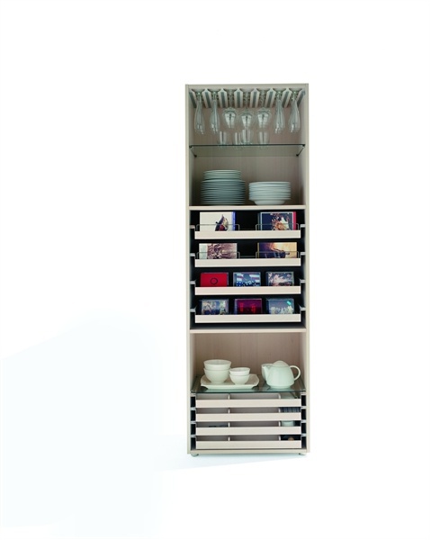 The rack-foam on aluminum frame (Horm). Can be filled with dividers for silverware; drawers; shelves; wood supply for knives; a suspension holder for glasses, kitchen utensils. Shelves, drawers, compartment for discs-the cassette, the workplace is all that's needed to the room of a teenager.