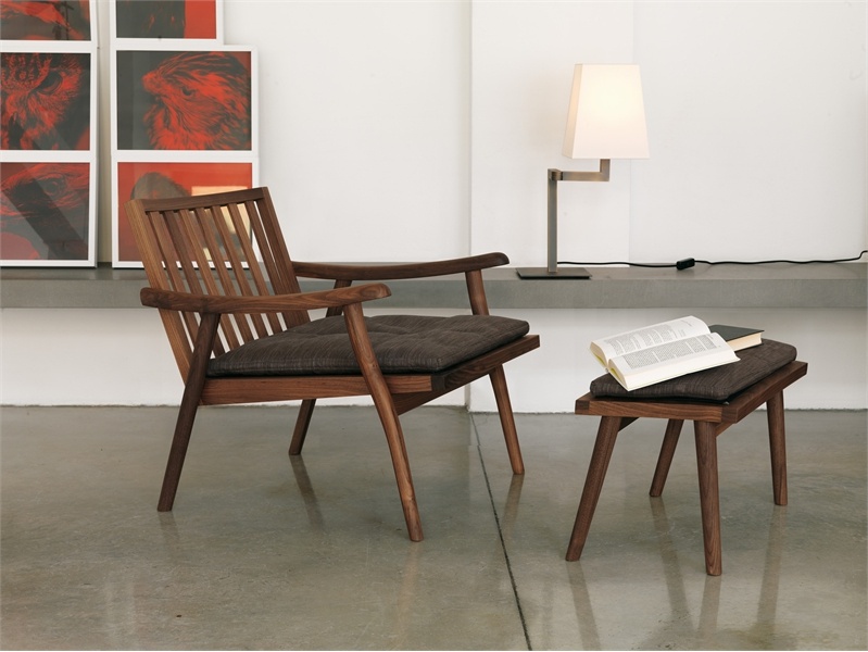 Pouf Pouf Fast, from the Italian manufacturer Vibieffe. The frame is made from solid walnut Canaletto. Legs are small natural curves. Seat supplemented with a removable pillow. The model is made in modern style.