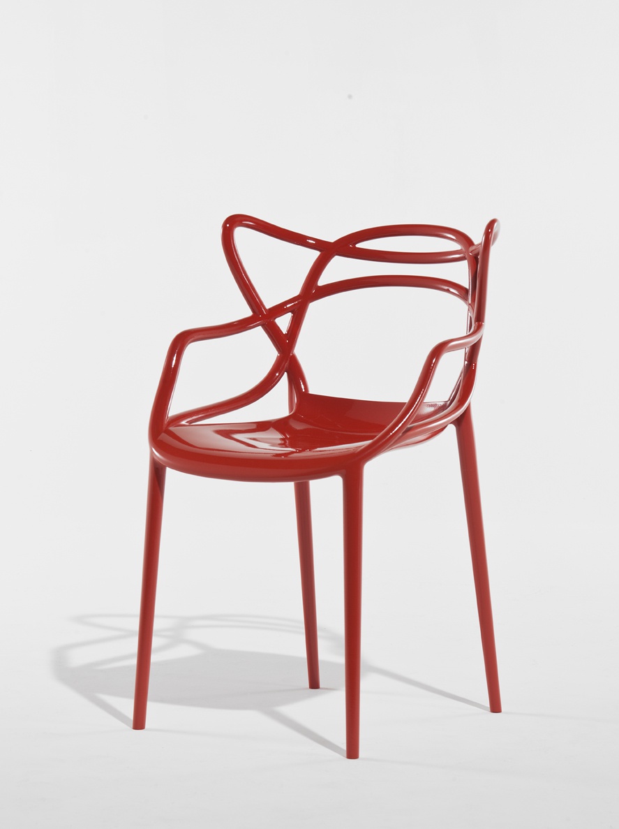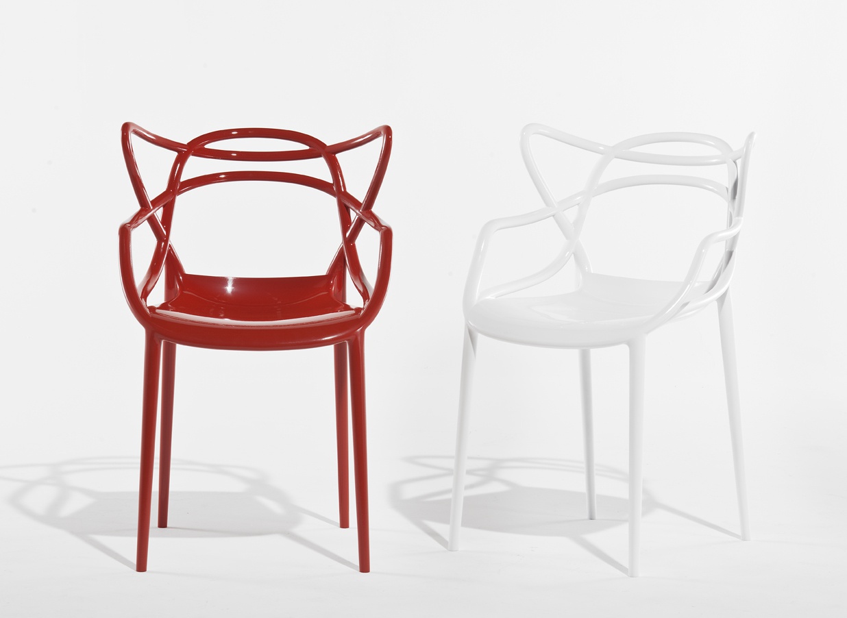 Chair with armrests Masters from the Italian manufacturer Kartell. The model is made on a frame made of polypropylene. The backrest is made in the form of interlocking plastic tubes. Finish the catalog of the manufacturer. The model is made in modern style.