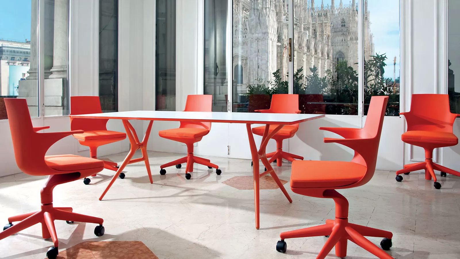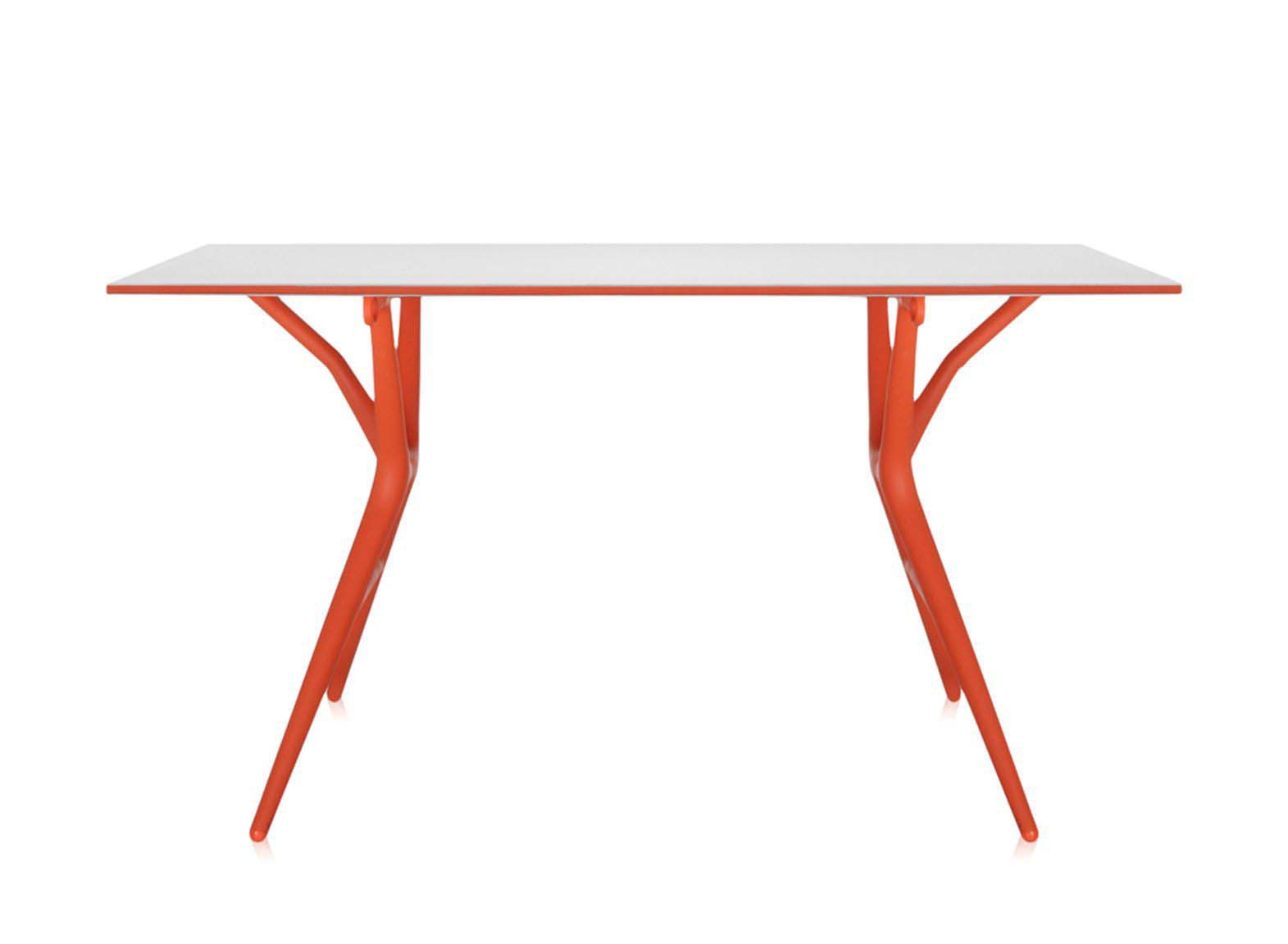 Spoon folding table from the Italian manufacturer Kartell. The table top is made from aluminum and laminate. The legs are made of polypropylene. The model is made in modern style. Additionally, you can buy a chair of similar design.