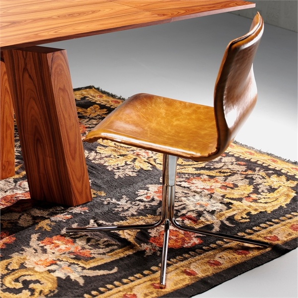 Vintage chair from the Italian manufacturer Rattan Wood. Swivel chair metal four-pointed base. Seat and backrest completely covered with skin. The chair is designed in modern style.