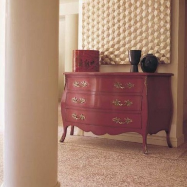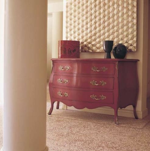 Deco dresser with drawers from the Italian producer Luciano Zonta. Model with a curved fa?ade and shaped decorative element at the bottom. The material is solid wood of valuable breeds. Offers 17 kinds of finishes, including silver and gold. Available to toning the furniture in accordance with customer's samples. The model is made in classic style.