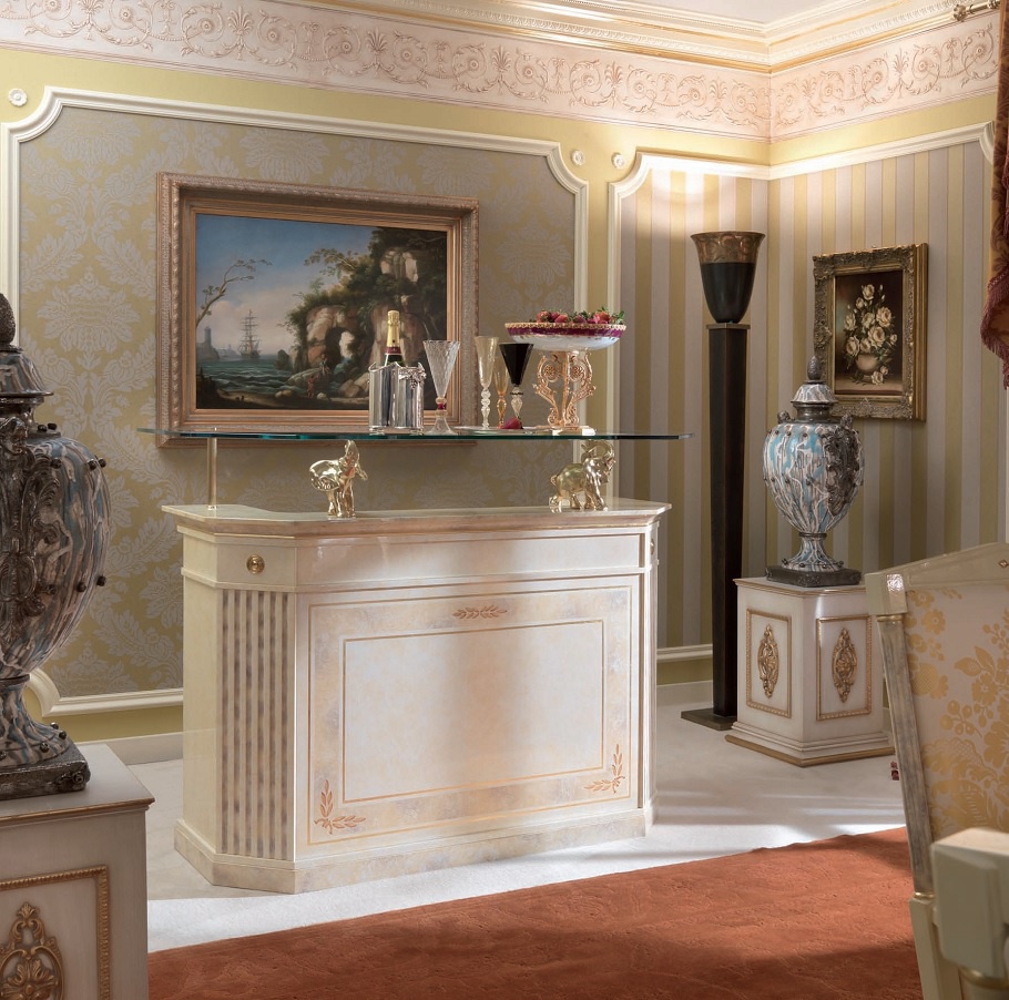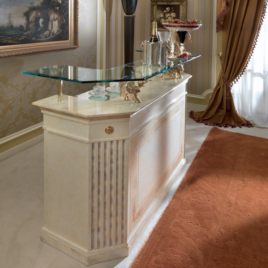 A rack bar Magna Plus from the Italian manufacturer Turri. The frame is made of wood. The handmade decor. Finish - gloss polyester, beige/brown with a pattern of tree root. The product is made in a classic style, a perfect choice for a classic interior.