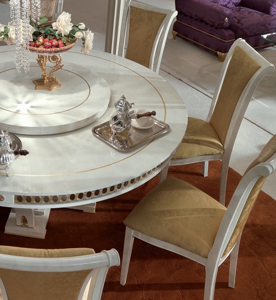 Arcade Plus the chair from the Italian manufacturer Turri. Frame made of solid wood. Chair with soft upholstery and a high back. The handmade decor. Finish - gloss polyester, white with a pattern of tree root. The product is made in a classic style, perfect in living room, dining room. Included in the dining set from the same collection.