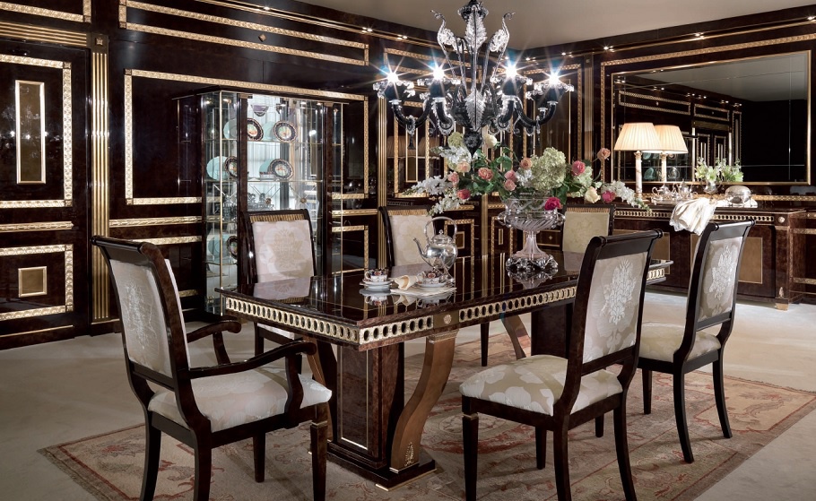 Arcade Plus the chair from the Italian manufacturer Turri. The frame is made from solid wood. The handmade decor. Finish - gloss polyester, in dark brown with a pattern of tree root. Product in a classic style, dining sets included in this collection.
