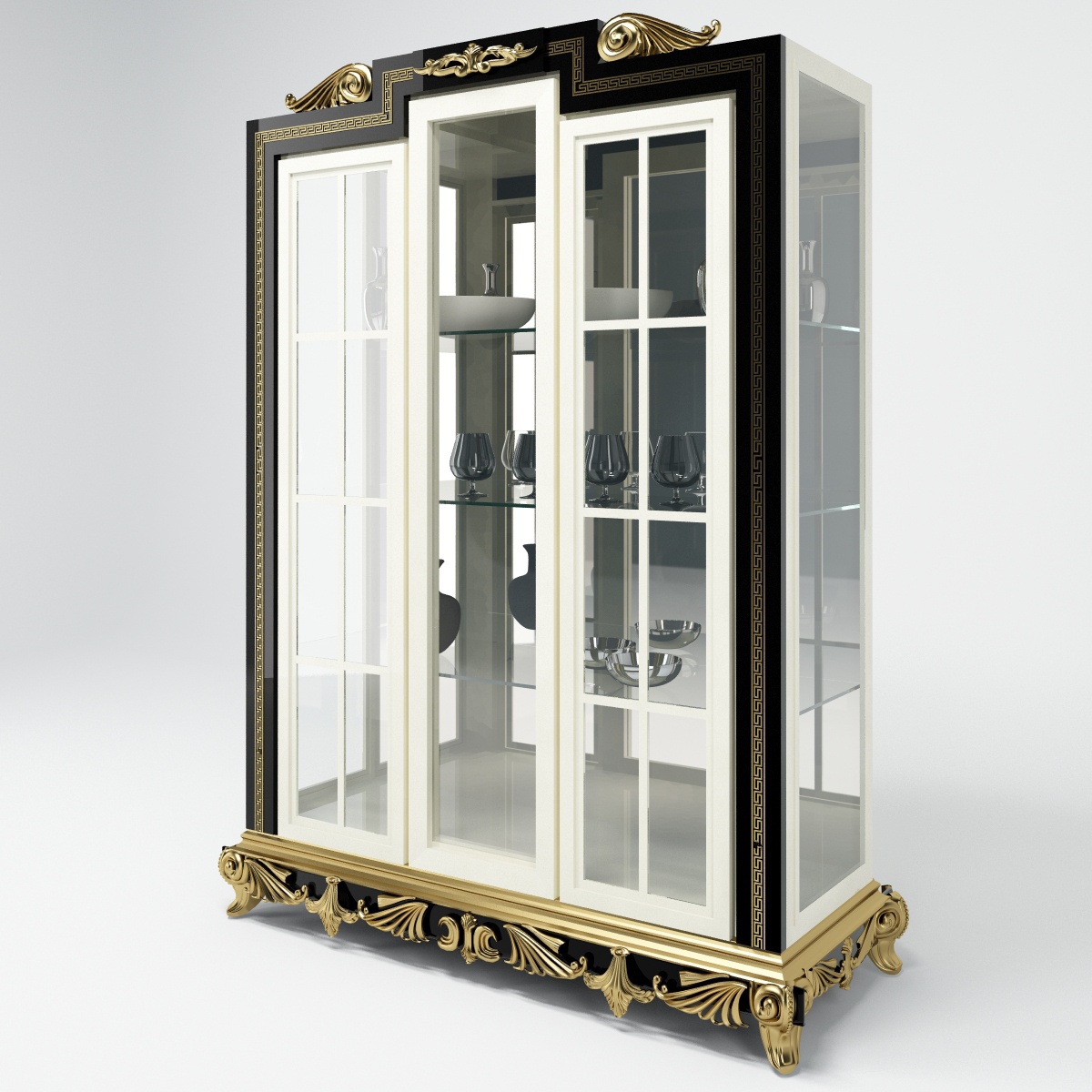 Showcase Hermitage from the Italian manufacturer Turri. The frame is made from wood with base solid wood. The ornament is represented in the form of thread, handmade. Finish - gloss polyester, beige/brown with a pattern of tree root and the color of mink. The Central panel is made of glass. Halogen lighting is available on request. Showcase with 2 doors made in the classic style.