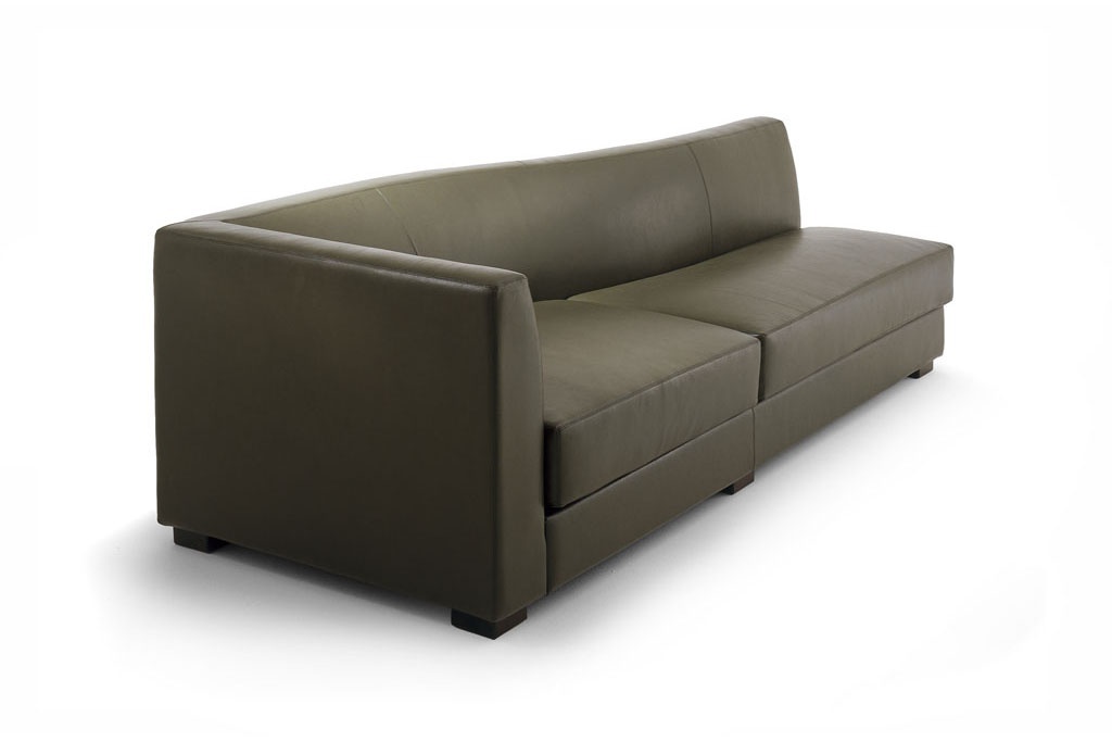 Demilune sofa from Italian manufacturer Rossi di Albizzate. Model with a hidden frame. The legs are made of wood. Finish the catalog of the company. Upholstered in textile or leather. The seat cushion is removable. Made in a modern style.