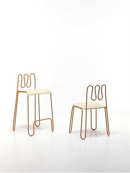 Chair Osvaldo from Italian manufacturer Sintesi. The model is made of bent steel rods. The seat is made of plywood. Offered lacquer finish, anthracite, orange or black. The model is made in modern style.