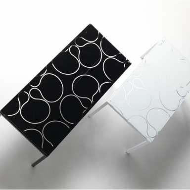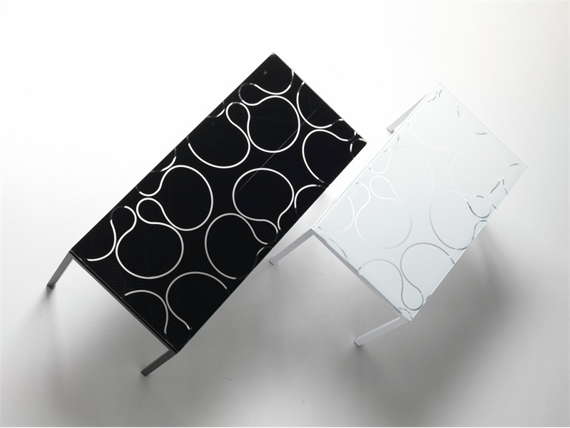 Tavola dining table from Italian manufacturer Sintesi. The model is made of metal. The table top is offered from wood or glass to choose from. There is an additional pull-out worktop. The lacquer finish is offered in white, black or anthracite. The top surface is decorated with pattern made of contrasting color. The model is made in modern style.