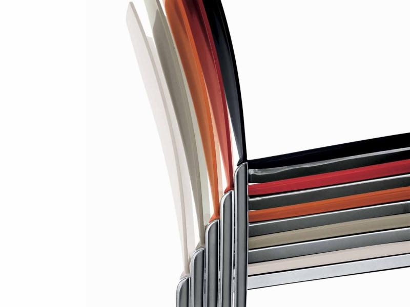 The Jazz chair from the Italian manufacturer Alivar. The frame is made of aluminum. Backrest and seat made of glossy synthetic material. The choice of color in stock.