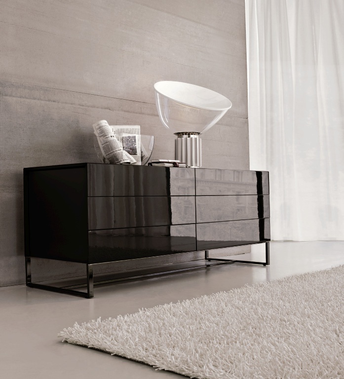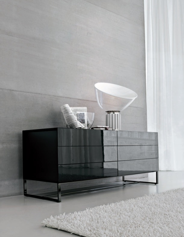 The Edo chest of drawers from Italian manufacturer Alivar. The product is made of solid oak or lacquered MDF. Legs of chromed steel.