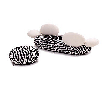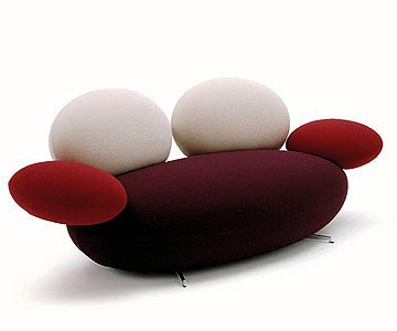 Supersassi sofa from Italian manufacturer Rossi di Albizzate. The frame is completely hidden. The legs are metal. The seat, a small backrest and armrest oval. Upholstery textile based on the company directory.