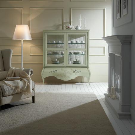 The buffet is low lying from the Italian manufacturer at the stilema stand. The model is made of two sections with hinged doors. The frame is made from solid wood. Finish - lacquer white or grey. Fronts and shelves are made of glass. The model is made in classic style.