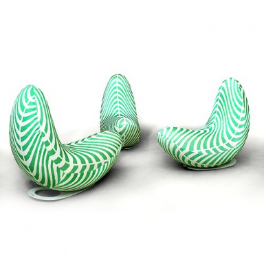 The Dondolo armchair by Italian manufacturer Rossi di Albizzate. The rocking chair in the shape of a month on a metal frame, the base of lacquered steel. Made of bent multilayer material. The filler of polyurethane foam. Removable upholstery made of a special fabric in various shades from the collection company.